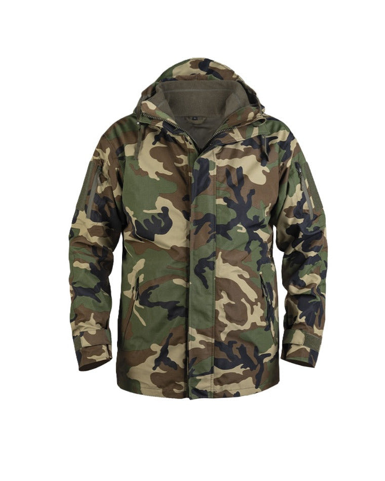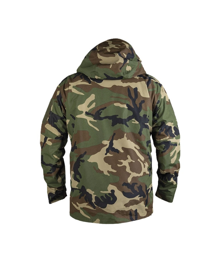 Woodland regenjas met uitneembare fleecejas Gen.II. Winterjas voor preppers, outdoor, wandelaars met bos camouflage militaire stijl leger jas. De buitenstof van de jas is gemaakt van een waterdicht en ademend 3-laags laminaat. De binnenkant is voorzien van een lichte voering en een sneeuwvanger. De fleecejas biedt de juiste thermische prestaties voor een breed scala aan toepassingen. Beide jassen kunnen samen of afzonderlijk worden gedragen.