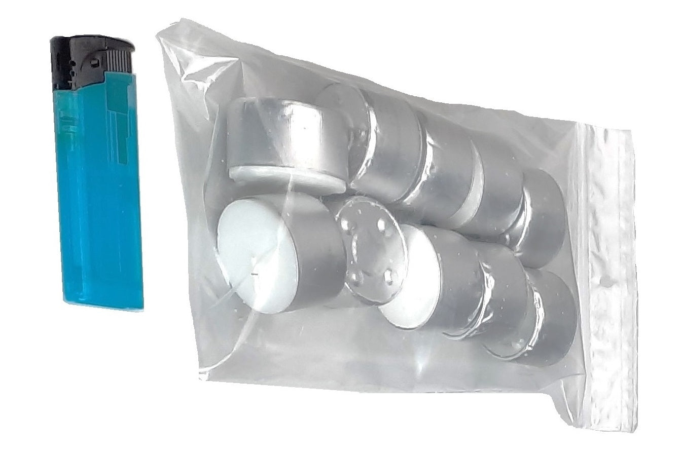 Theelichtjes + aansteker - 10 stuks Theelichtjes met elk een brandtijd van 8 uur + standaard aansteker.