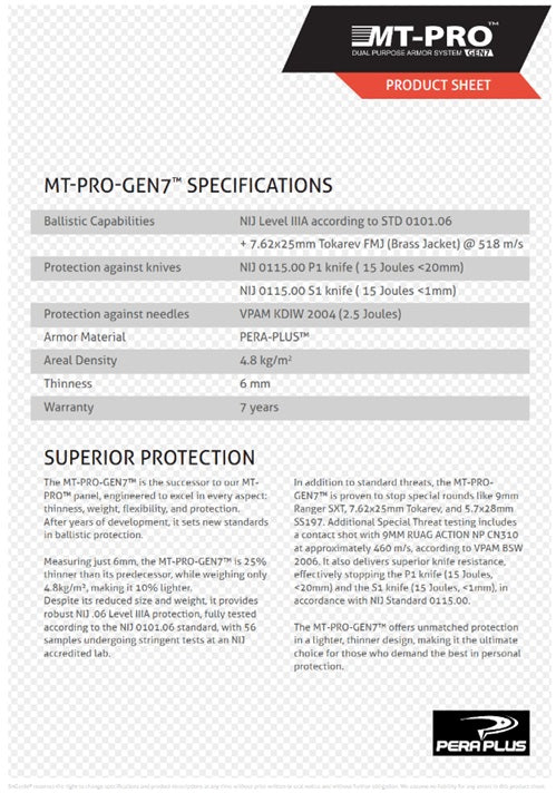Door het gebruik van PERAPLUS-GEN7™ bekomt met een lichter en dunner paneel die zowel superieure kogelwerende prestaties als bescherming tegen messen biedt.