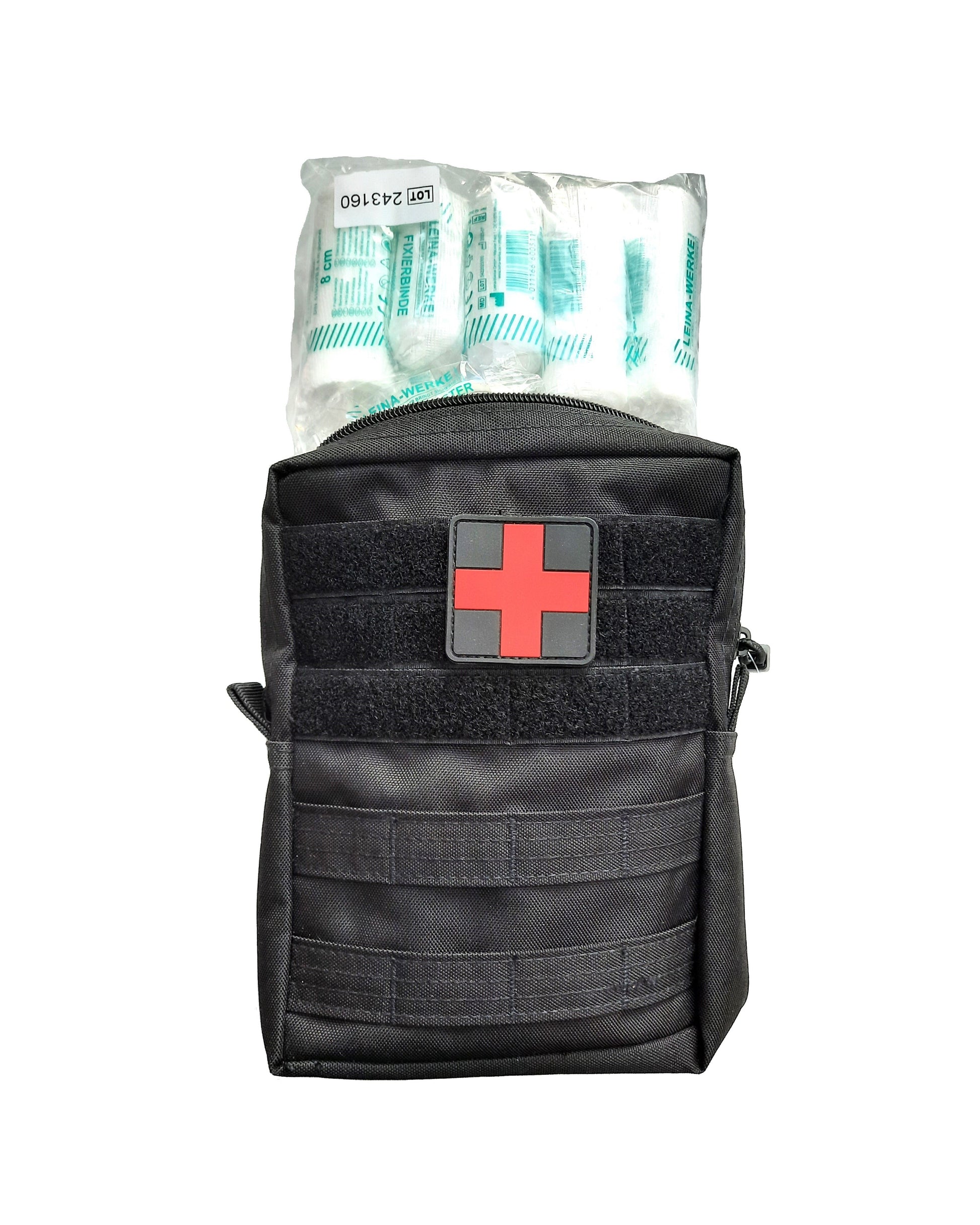 1 EHBO-set 43-delig Molle tasje: bevat genoeg medische items om een wonde meerdere malen te verversen.