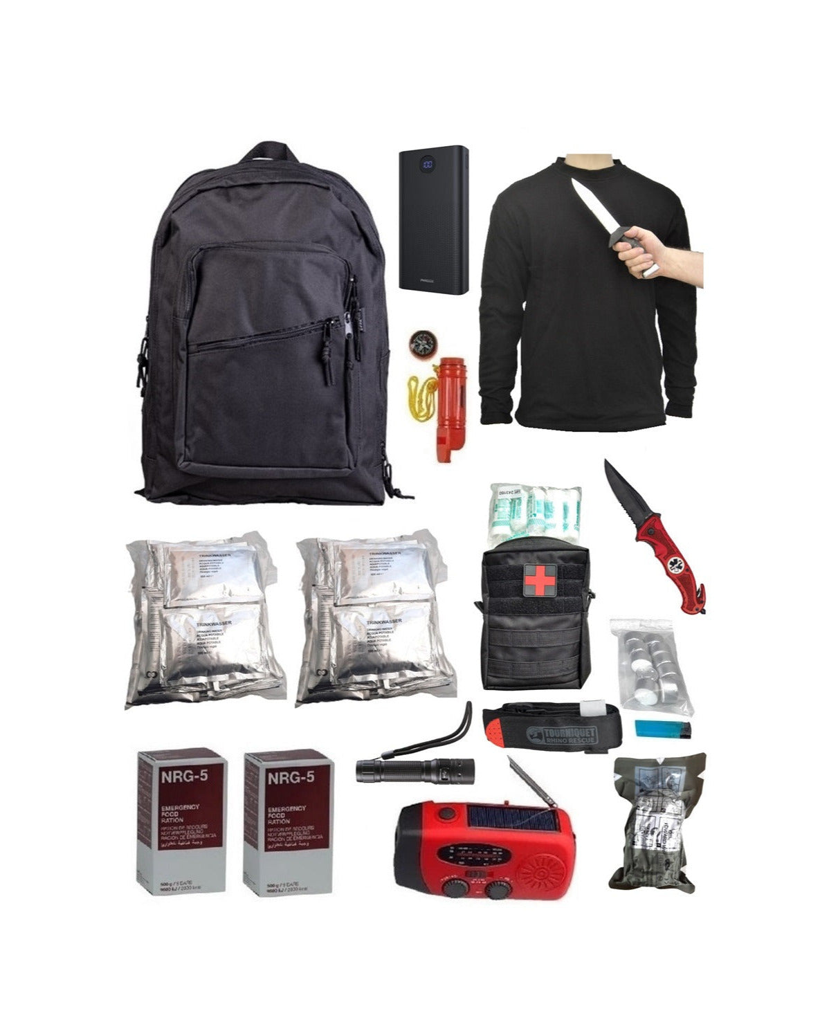 Noodpakket 72 uur anti steekpartij mesaanval T-shirt noodrugzak met snijwerende en steekwerende zwarte T-shirt met lange mouwen en uitgebreid EHBO om snijwonden te behandelen.