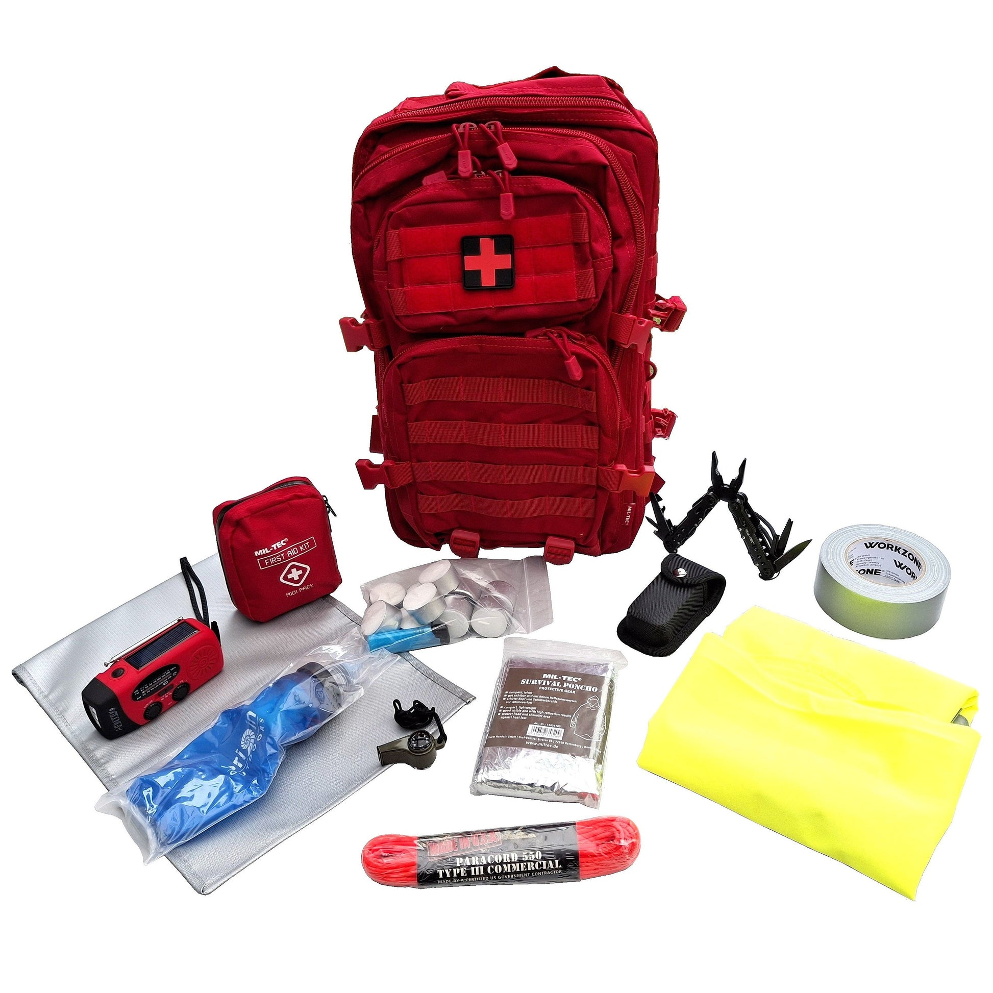 Alternatief rode rugzak noodpakket met kruis om in Vlaanderen online te kopen. Grotere noodrugzak 36L basis inhoud en zelf samenstellen. Dit noodpakket is samengesteld volgens de visie van Vlaamse lokale hulpverleners maar is als alternatief samengesteld met meer courante survival artikelen zoals een grotere rode rugzak met Molle webbing aan de buitenkant een inhoud van 36 liter waar men nog tal van extra nuttige items kan toevoegen.