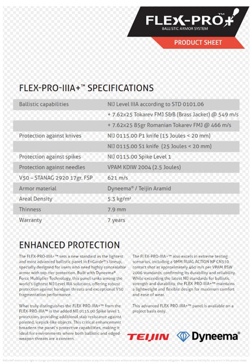 Officiële gecertificeerde tests tegen kogels 3a NIJ 0101.06 FLEX-PRO-PLUS spike