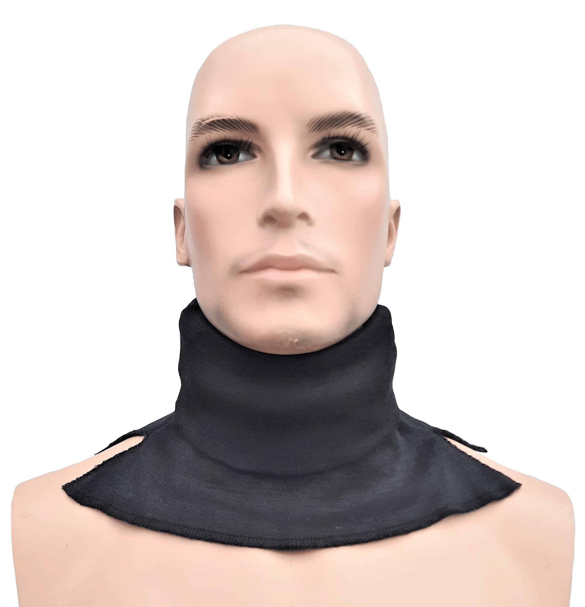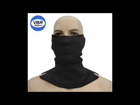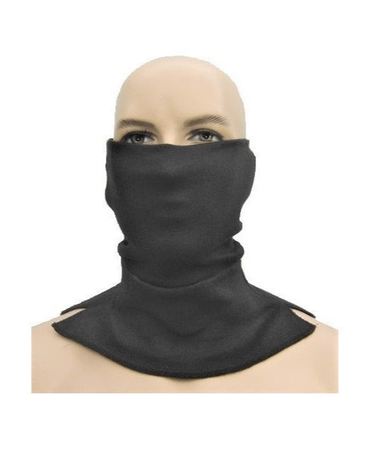 Anti steekpartij mesaanval snijwerende gezichtsbescherming en steekwerende nekbescherming brandwerende zwarte col voor burgers, politie, security en bewakingsagenten tegen messen of glasscherven. Dubbele laag aramide dun genoeg om door te ademen.