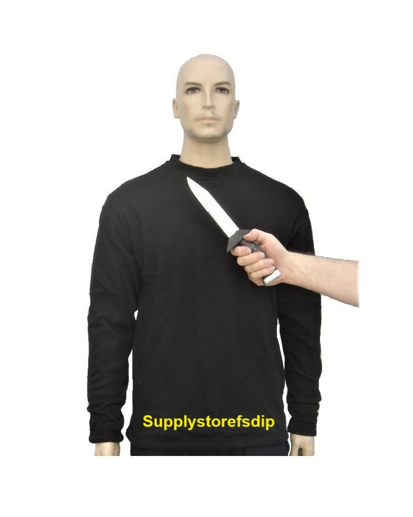 De anti steekpartij mesaanval zwarte sweater lange mouwen is een snijwerende en snijbestendige sweater Level 5 beperkt steekwerend over de volledige oppervlakte geschikt voor dames en heren. Het is een ernstige en praktische bescherming tegen snijwonden veroorzaakt door een aanvallen met een cuttermes, zakmes of glasscherf.