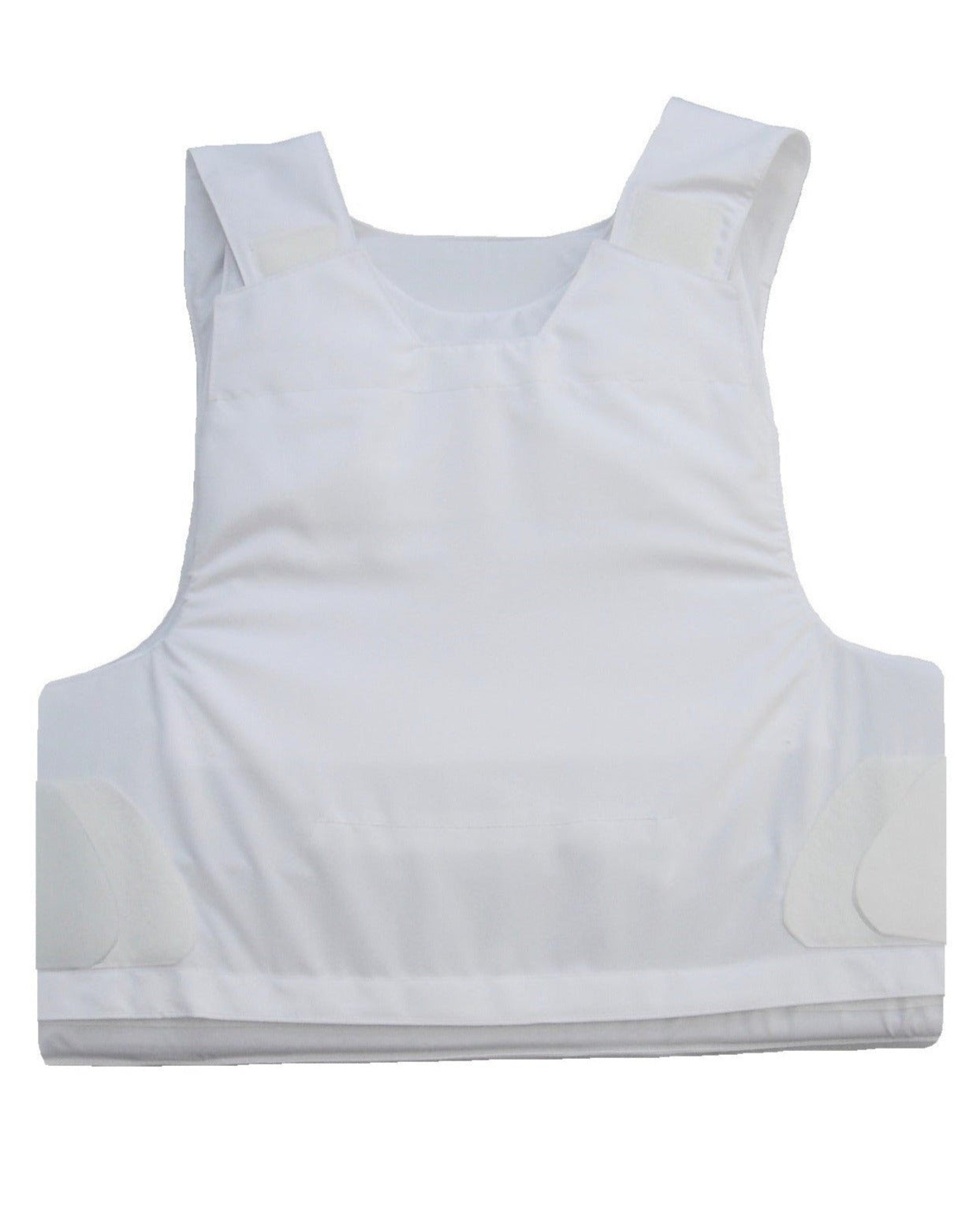 Dual-Use™ wit kogelvrij vest klasse 4 van Engarde®. FLEX-PRO NIJ 3a (06) zacht kogelwerend vest met twee harde kogelwerende platen level IV ICW van Engarde® tegen oorlogsgeweren. Deze ballistische vest kan zowel zichtbaar als discreet gedragen worden.