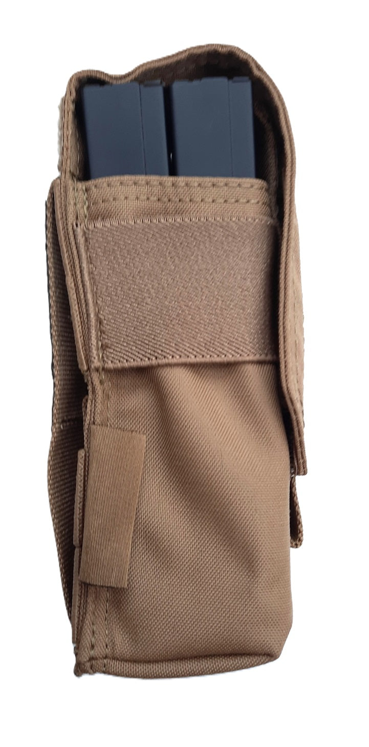 Warrior coyote magazijntas met klittenband klepsluiting voor 2 stuks M4 magazijnen in kaliber 5.56mm zoals de SCAR 16 of FNC.