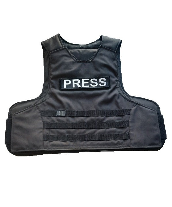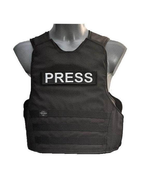 De voorkant van het Rhino™ kogelvrij vest heeft een MOLLE webbing platform met ID-tag bevestigingen aan de voor- en achterkant waarop er een PRESS patch is gekleefd. Het Rhino™ PRESS kogel en steekwerende vest is geschikt voor zowel dames als voor heren en bevat twee inwendige zakken met elk een harde kogelwerende plaat NIJ-4+ Stand Alone erin. Goed verstelbaar en aanpasbaar voor een goede pasvorm.