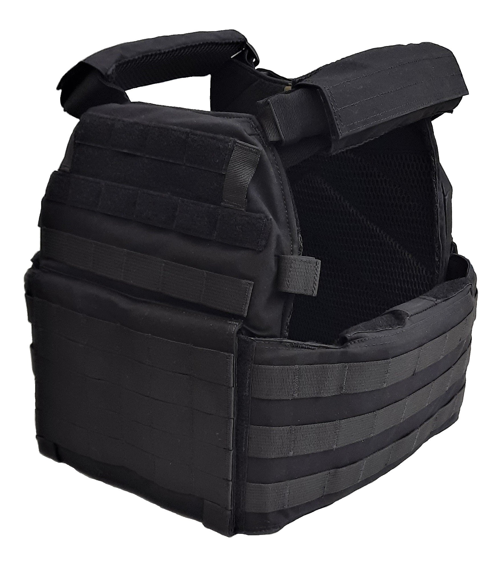 Warrior DCS plate carrier zwart met kogelvrije zijplaten klasse NIJ 4 Stand Alone kopen. Professionele Level 4 plate carrier DCS van Warrior Assault System in zwart met twee grote 250x300mm harde kogelwerende platen Level NIJ-4+ Stand Alone NIJ 0101.04 en twee 152x152mm kogelvrije zijplaten NIJ-4 Stand Alone (04).