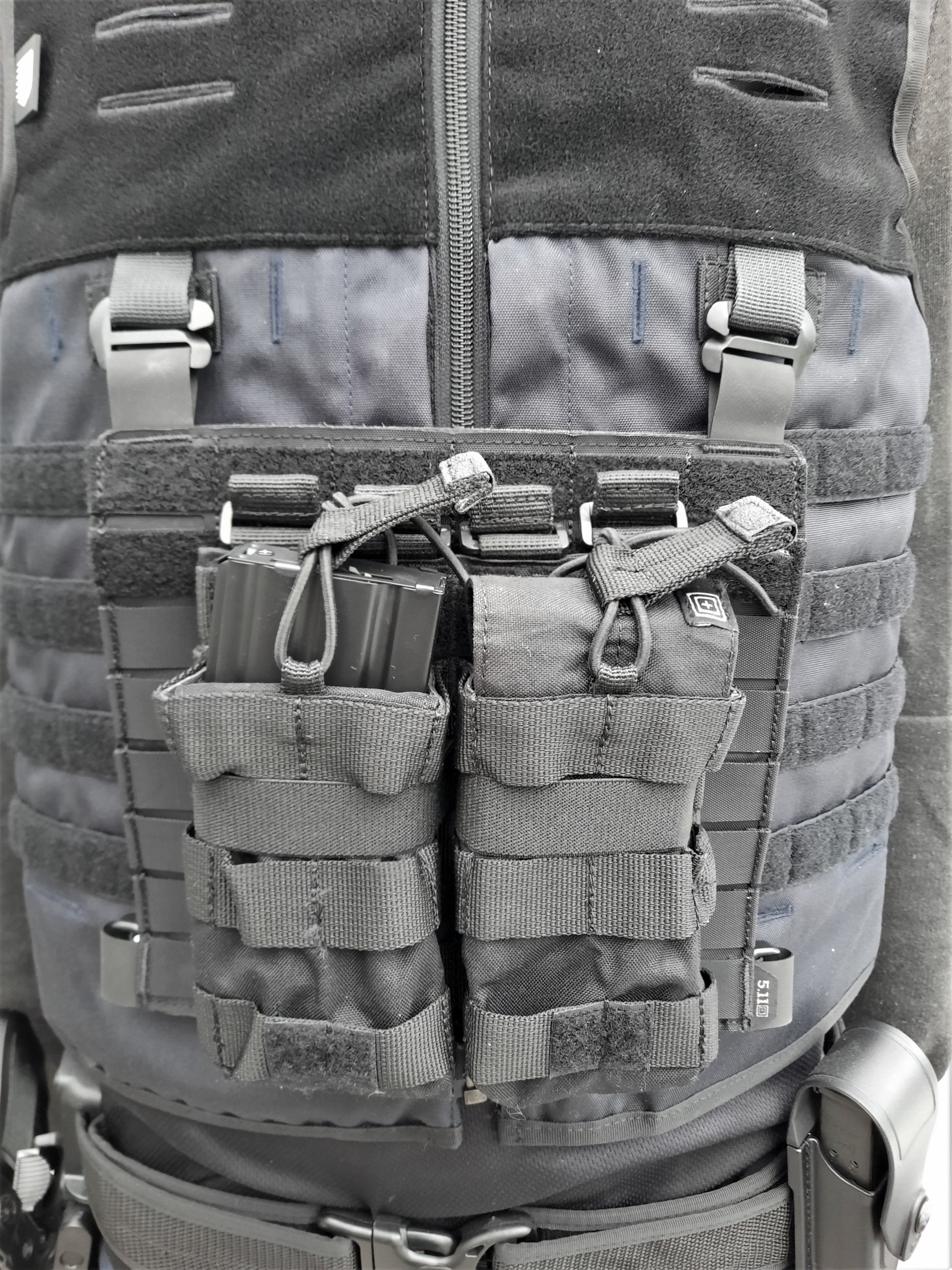 De 5.11 Tactical Laser Cut Molle platform met AR 300 Blackout magazijn tasjes is een afneembaar laadplatform die op verschillende soorten uitrusting kan geplaatst worden. Dit is mogelijk voor tal van 5.11 artikelen, maar het kan ook op de lasercut en molle politie kogelwerende van Sioen Ballistics gemonteerd worden.