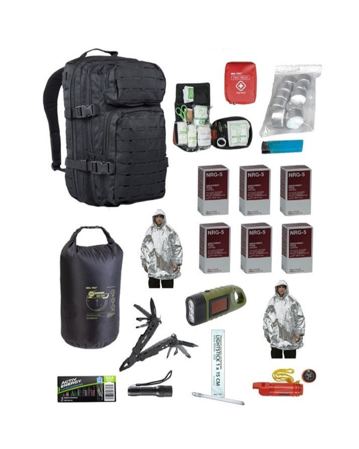 Basis noodpakket 72 uur voor 2 personen België belangrijkste items om te overleven die men normaal niet in huis heeft om te overleven voor 72 uur..