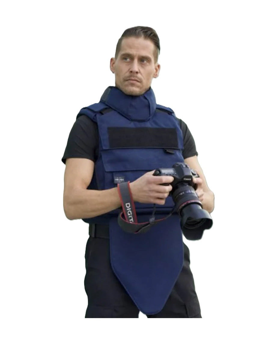 Gilet pare-balles et anti-couteaux bleu marine de niveau IIIA pour les ONG ou les non-combattants tels que les ingénieurs, les techniciens, journalistes et les civils.