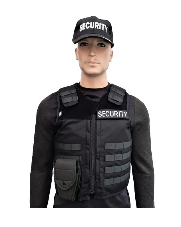 Gilet pare-balles Molle tactique à fermeture éclair noir 3A NIJ 0101.06 pour les gardes de sécurité avec fermeture éclair au milieu. Sangle Molle pour attacher les accessoires.