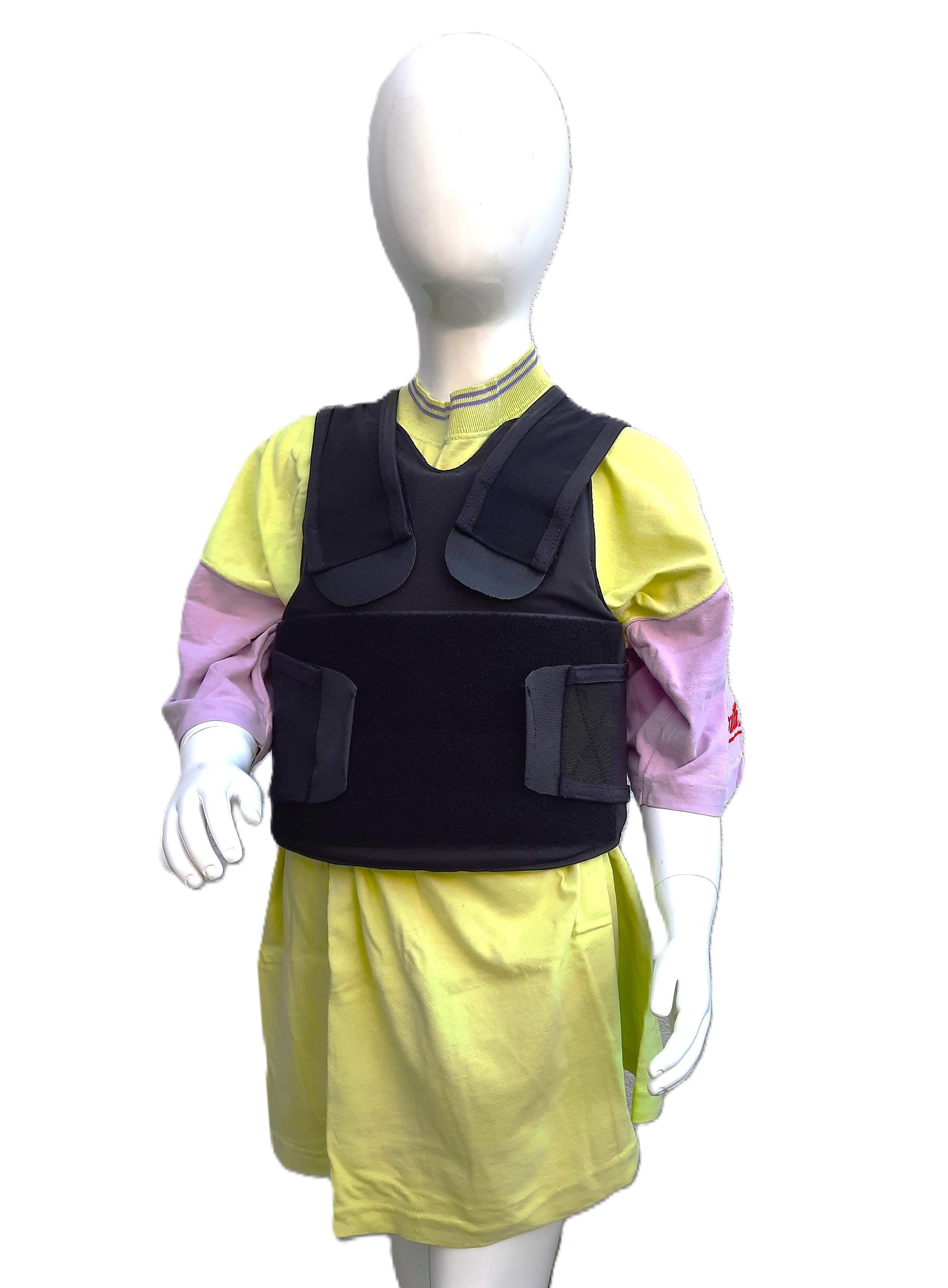 Véritable gilet pare-balles pour enfants, ce n'est pas un jouet. Pour une protection discrète contre les balles, les coups de couteau et les éclats de grenade. Professionnel gilet par balle 3A très discret à porter invisible sous les vêtements pour les enfants qui sont menacés ou se sentent menacés sur la voie publique, à l'école ou au club de sport. Protection générale des enfants contre les attaques terroristes, agressions conjugales, menaces générales.