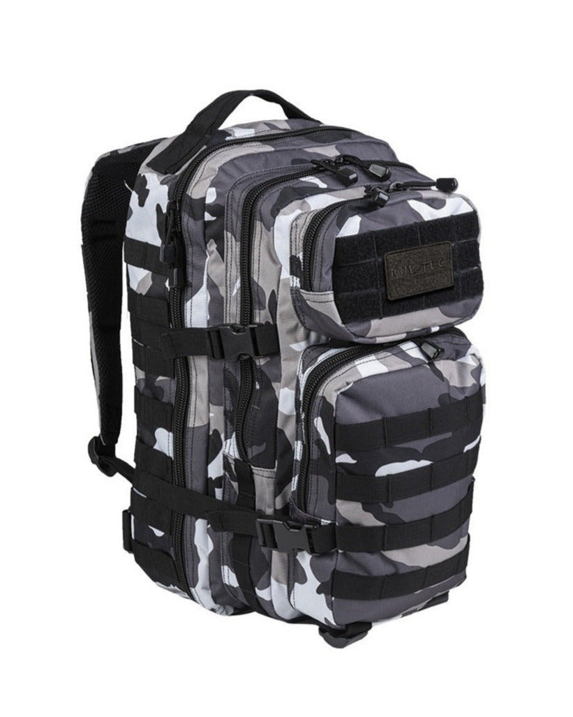 Middelgrote rugzak met een inhoud van ca. 36 liter URBAN camouflage maakt u minder zichtbaar in bebouwde gebieden. Geschikt voor prepping. Comfortabel in gebruik opent zoals een valies. De Molle webbing biedt de mogelijkheid deze rugzak nog uit te breiden met extra tasjes.