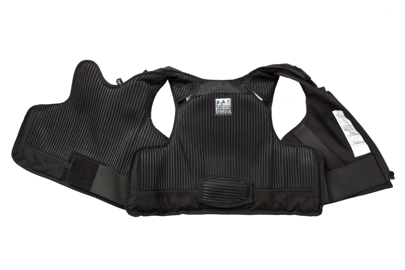 De Sirius steekwerend en kogelwerend vest NIJ-3A(GRAN) met rits van Sioen Ballistics. Zwart kogelvrij of kogel- en steekwerend vest voor beveiliging, security of politie België legaal online kopen.