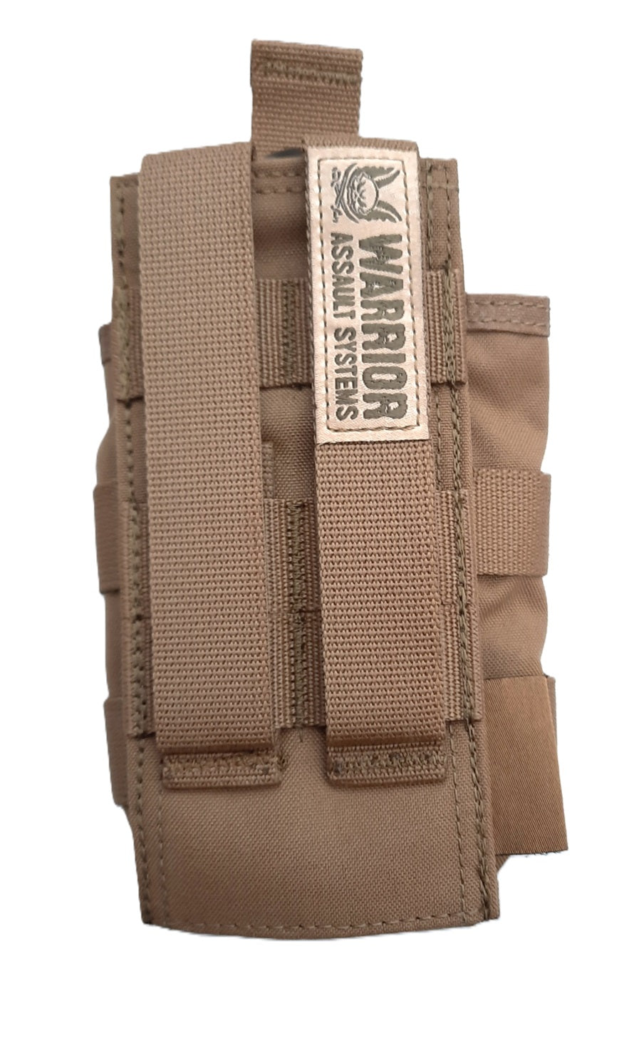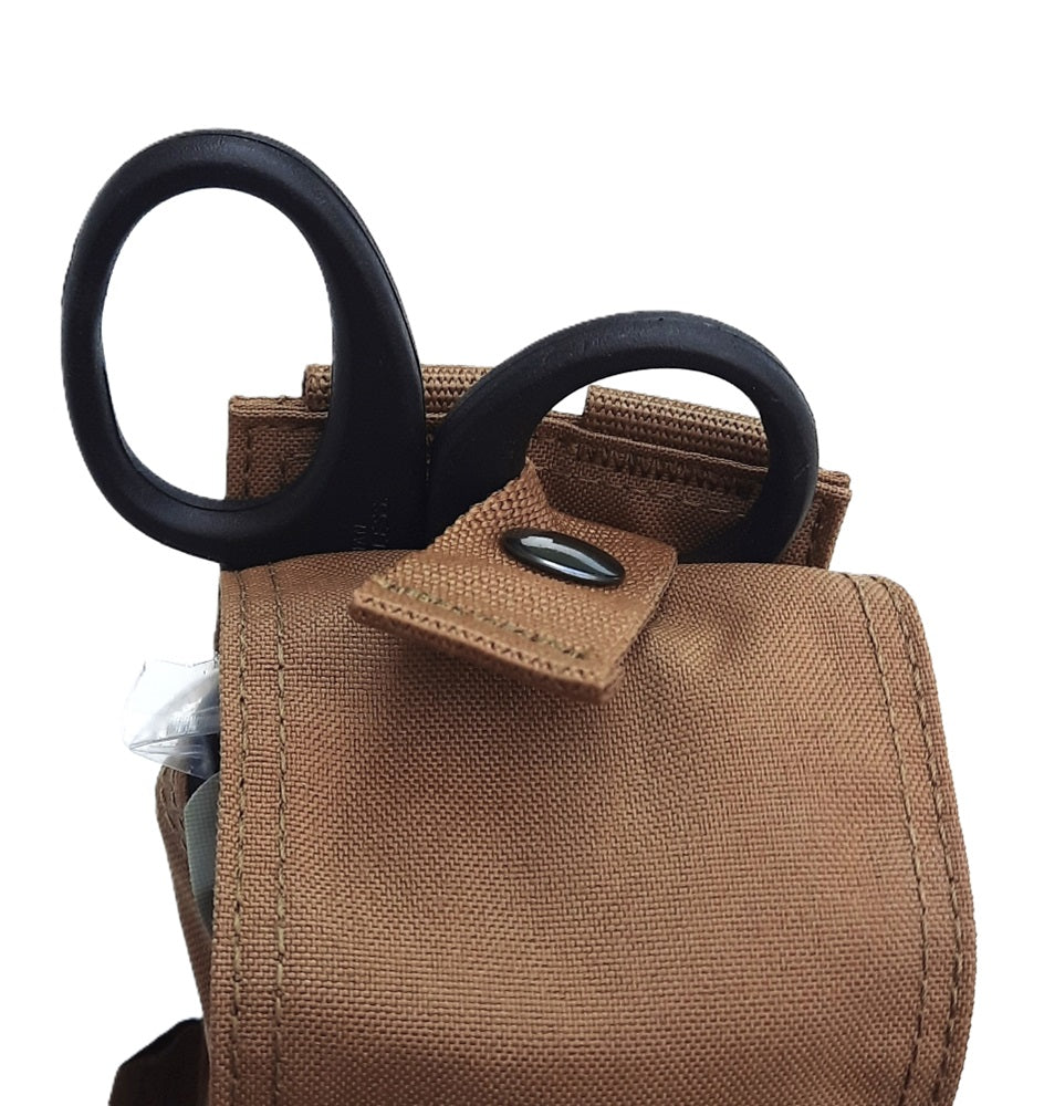 De Individual IFAK tas van Warrior biedt ruimte voor bijvoorbeeld een CAT tourniquet, gevechtsgaas en traumaverband. De inhoud kan snel uit de tas worden gehaald door aan een lus met een grote D-ring te trekken. De tas heeft ook een gleuf voor een traumaschaar, MOLLE-lussen aan de zijkant en een klittenbandgedeelte op de dekselflap.
