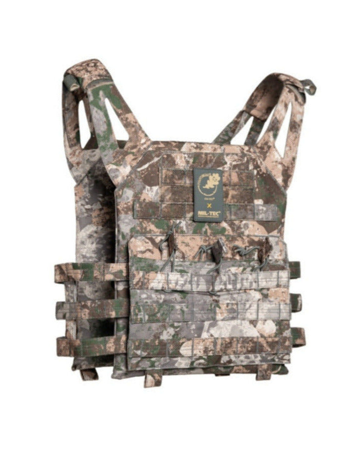 Extreem robuuste, modulaire platendrager van polyester die u geheel naar eigen wens kunt uitrusten: aan de voor-, achter- en zijkanten van de platendrager zijn MOLLE-lussen genaaid.