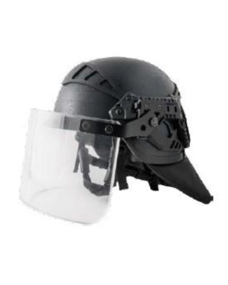 De RIOT-helm is een hoogwaardige helm die een maximale bescherming van het hele hoofd biedt met een ballistisch vizier en nekbeschermer. Alle elementen op de helm zijn bevestigd zonder gaten in de schaal te boren waardoor er geen potentiële zwakke punten in de helm zijn. Deze helm vergroot het beschermingsgebied en beschermt ook het aangezicht en de ogen.