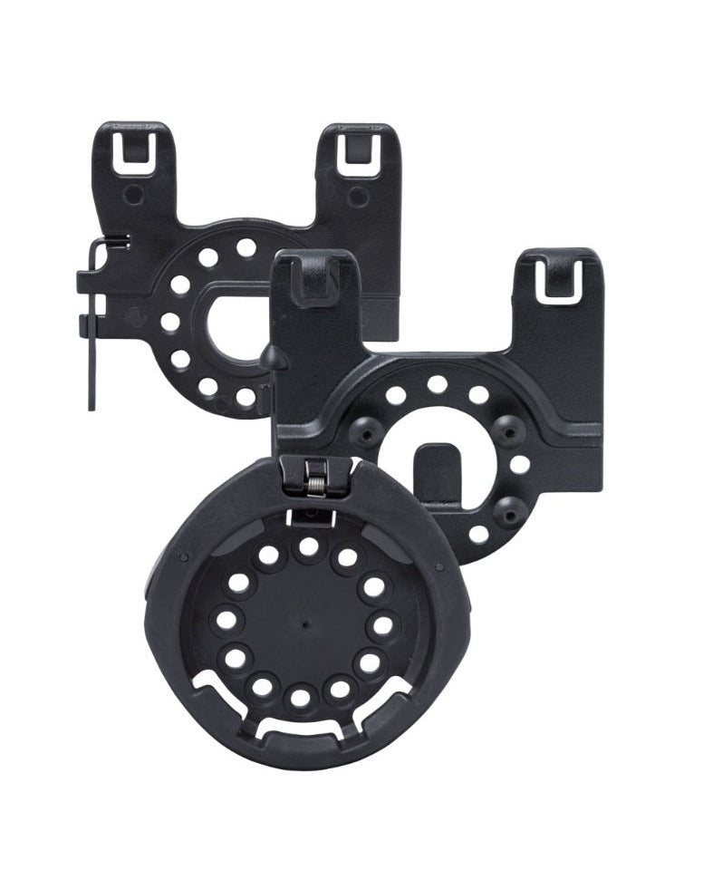 Voor eenvoudiger platformwisseling bevindt de getande ring zich aan de achterkant van de holster en de snelwisseladapter (vrouwelijk) op het montageplatform van de holster.