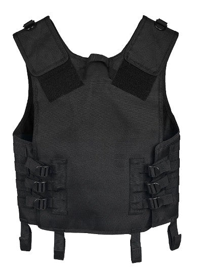 Tactical Load Bearing Vest zwart Gen.2 draagvest wordt aan de voorzijde gesloten/geopend door een tweewegrits en/of drie Fastex-gespen.